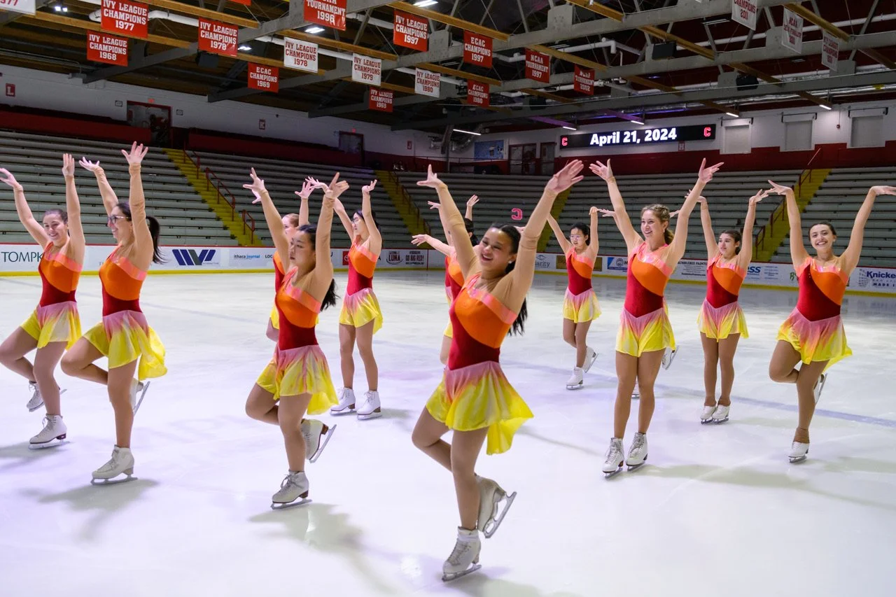 Our practices (off-ice and on-ice) are usually held once a week on-campus at Cornell’s Lynah Rink! These practices usually consist of drills, choreography, and creative elements, and are run by the captains or choreographers.